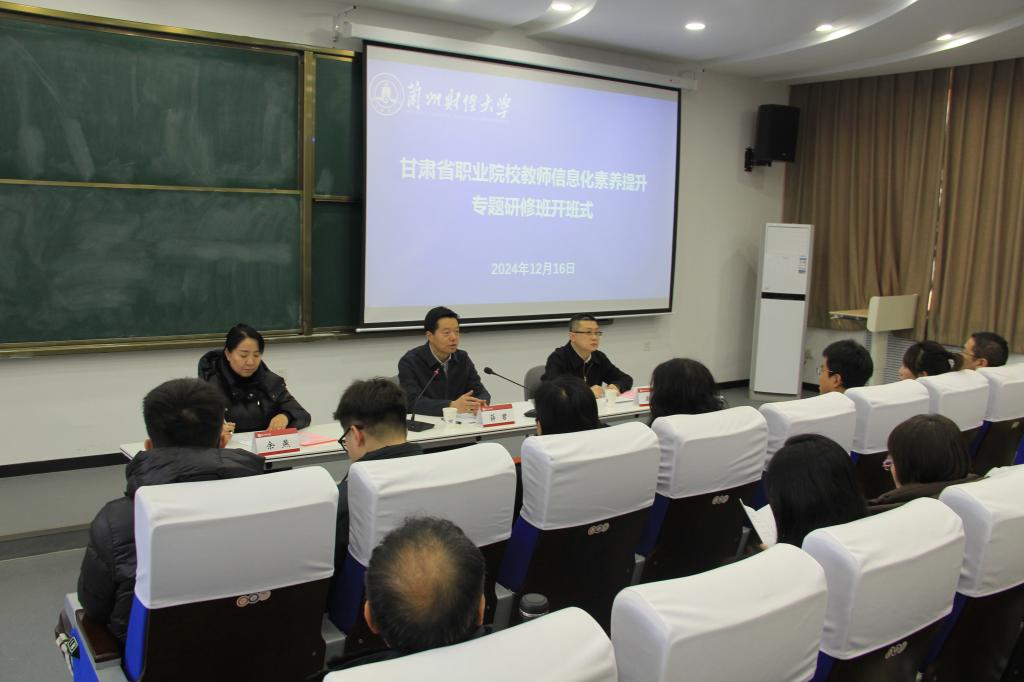 12月16日上午,“国培计划”甘肃省职业院校教师信息化素养提升专题研修班在我校段家滩校区顺利开班。校党委常委、副校长薛君出席开班式并致辞。继续教育学院负责人参加开班式。