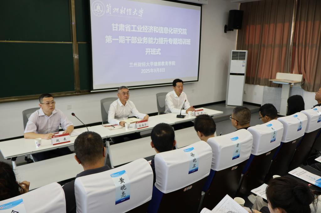 9月8日上午,由甘肃省工业经济和信息化研究院主办、兰州财经大学承办的甘肃省工业经济和信息化研究院第一期干部业务能力提升专题培训班在段家滩校区顺利开班。甘肃省工业经济和信息化研究院院长陈海澎作动员讲话,兰州财经大学党委常委、副校长薛君致欢迎辞。继续教育学院负责人参加开班式。