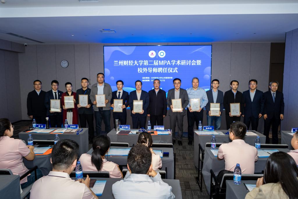 9月27日,兰州财经大学举行第二届MPA学术研讨会暨校外导师聘任仪式。甘肃科技投资集团有限公司党委副书记、董事秦文辉,兰州财经大学党委常委、副校长景宗刚,中共甘肃省委党校(甘肃行政学院)科研处处长赵前前、公共管理教研部主任鲜静林,学校学科建设与发展规划处、研究生院、公共管理学院的负责同志,新聘校外导师和全体MPA学员参加活动。