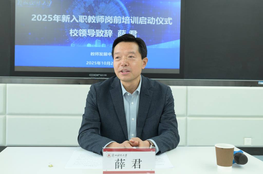 薛君首先向各位新同事表示热烈欢迎,并围绕“认知定位、学习实干、进取提升”三个关键词为新入职教师做了培训动员与辅导。他强调,教师是太阳底下最崇高的职业,大家肩负着培养人才的重任,只有让自己变得更优秀,才能不辱使命。他希望大家以“四有好老师”为职业目标,自觉弘扬并践行教育家精神。要明确职业规划,秉持实干精神,积极进取,不断提升教学与科研能力,为兰州财经大学的教育事业奉献智慧与力量。