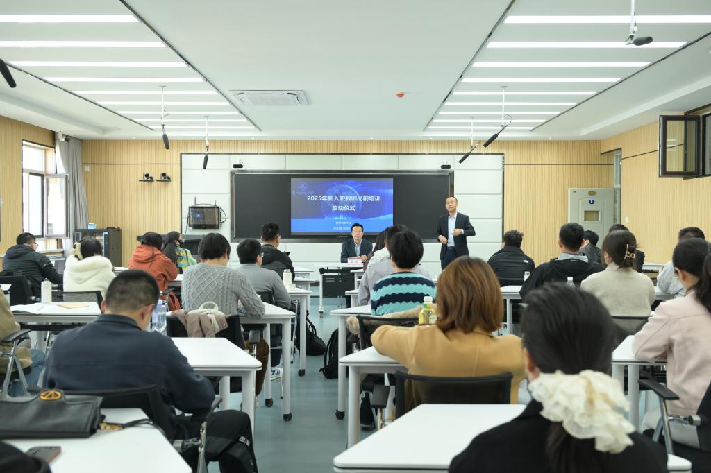 10月21日下午,2025年新入职教师岗前培训启动仪式暨首场报告会在和平校区教师发展中心举行,校党委常委、副校长薛君出席仪式并致辞,活动由教师发展中心负责人主持,50余名新入职教师参加。
