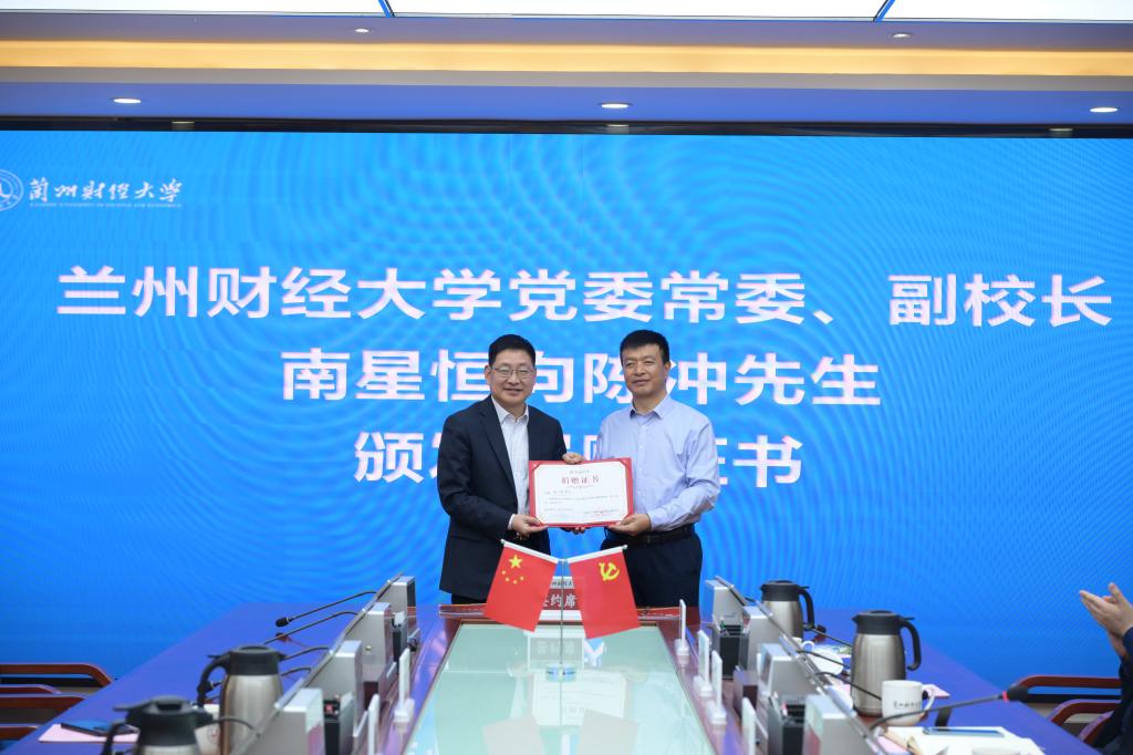 南星恒代表学校对陈冲校友的到来及捐赠表示热烈欢迎和衷心感谢。他指出,学校各项事业的发展和成绩的取得都凝聚着校友的力量和贡献,校友是母校发展最宝贵的财富和最坚实的后盾,陈冲校友的善举,不仅体现了其个人对母校的深厚情谊,更彰显了一代代兰财人的责任与担当。他希望校友们能一如既往地关注母校建设,与母校携手共促发展。