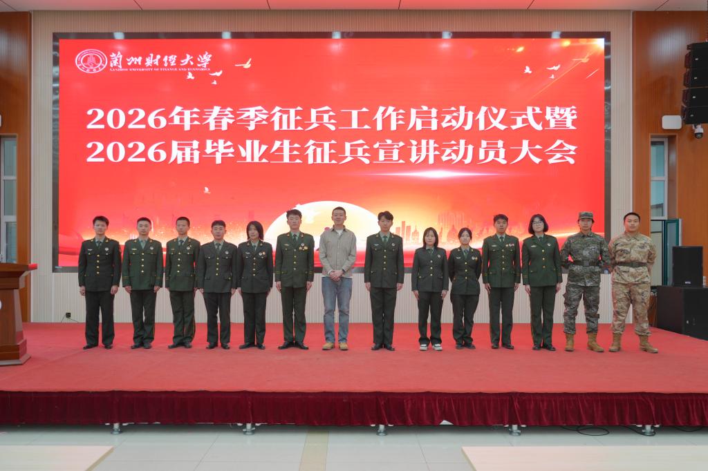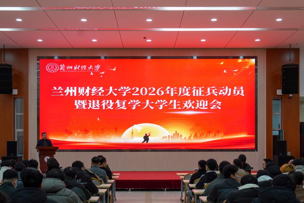 12月25日下午,学校2026年度征兵动员暨退役复学大学生欢迎会在和平校区博雅堂举行。城关区人民武装部上校部长韦显伦、校党委常委、副校长南星恒,学校征兵工作领导小组成员、各学院相关负责人,应征青年、退役大学生士兵和2026届毕业生代表参会。