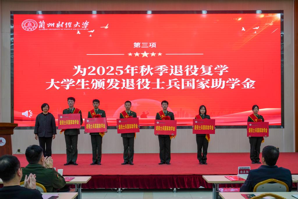 党委学生工作部负责同志为2025年秋季退役复学大学生士兵代表颁发退役士兵国家助学金,退役复学大学生士兵集体宣誓,彰显了永葆军人本色、勇担使命的坚定信念。