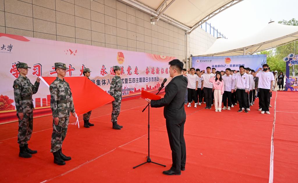 5月4日中午,我校“学习二十大、永远跟党走、奋进新征程”2023年新团员集体入团仪式暨五四主题团日示范活动在和平校区举行,全体专职团干部、60名新发展团员、校团委学生骨干、团员青年代表等200余人参与了活动。