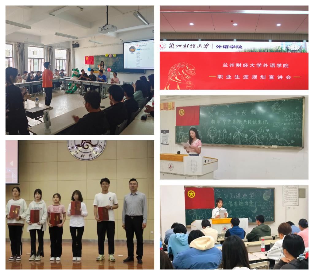 统计学院分团委、财税与公共管理学院分团委、经济学院分团委在团日活动中,通过表彰先进、事迹宣讲等,充分发挥先进典型示范作用,激励团员青年挺膺担当、争先创优。外语学院分团委举办了职业生涯规划宣讲会,邀请到学院往届优秀校友分享了各自的求职经历,并作了经验分享,团支部通过开展主题讨论活动,了解专业前景和就业形势,初步明确就业方向。