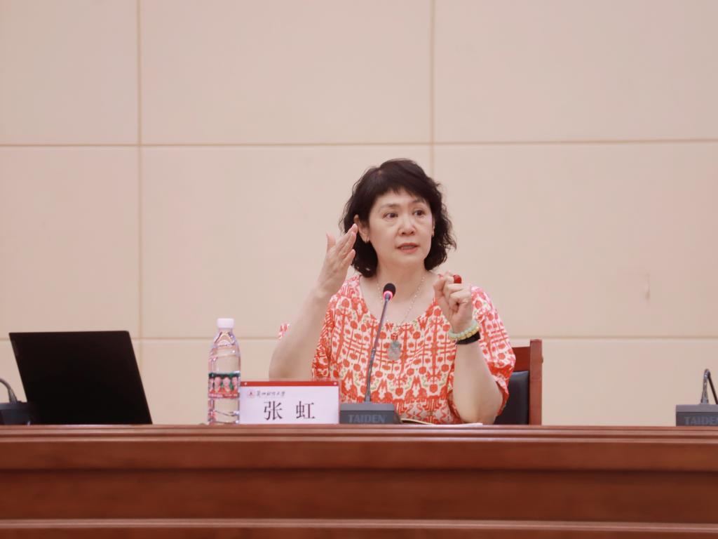 讲座一开始,张虹老师就提出“只有民族的,才是世界的”观点,从如何欣赏戏曲到戏曲的起源,再到戏曲艺术的“戏无情不动人,戏无理不服人,戏无技不惊人”向全体师生展示戏曲的艺术魅力。然后,从京剧的西皮和二黄腔以及戏曲的四功(唱,念,做,打)和五法(手,眼,身,法,步)两方面在现场进行展示。深入浅出,为聆听讲座的师生们带来了一场结合专业知识与艺术表演为一体,寓教于乐的视听盛宴。此外,张虹老师将自己近两年的作品与师生们进行分享,京剧的演唱和现代艺术的完美结合使得全场沉浸其中。
