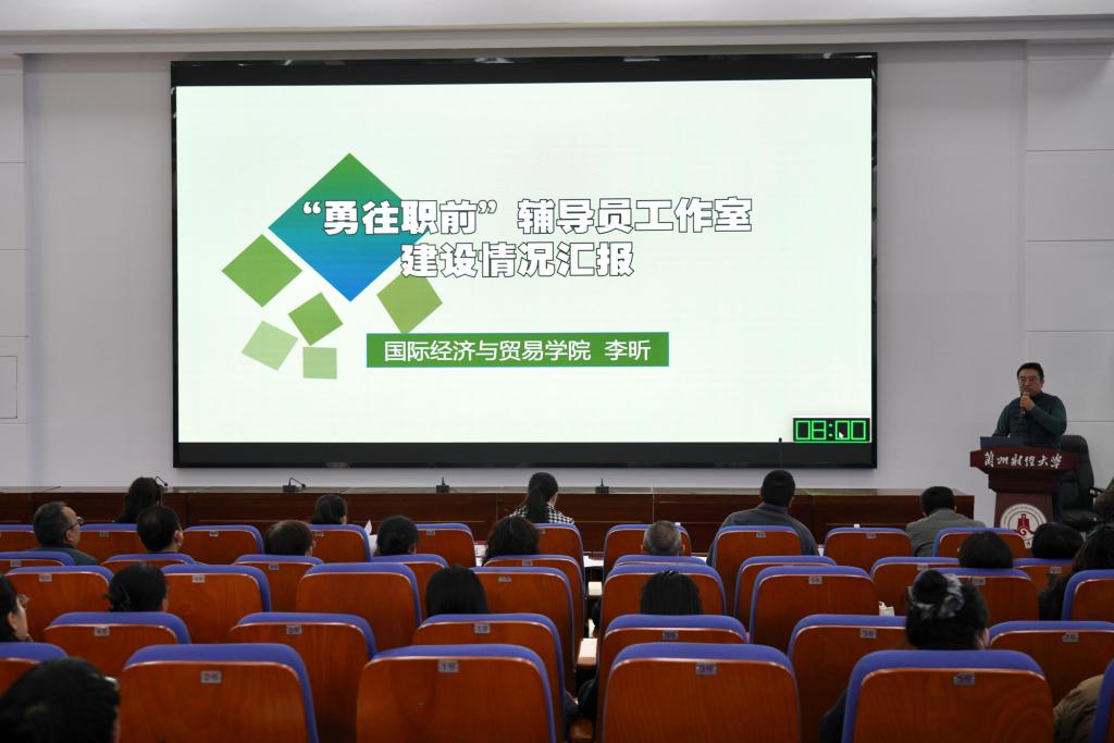 11月20日下午,我校在树人楼就业宣讲大厅举行校级辅导员工作室验收评审暨工作室申报答辩会。教育部辅导员名师工作室主持人刘博,省级辅导员名师工作室主持人马玥、郜晋瑜、贾永胜、周亮担任评委。