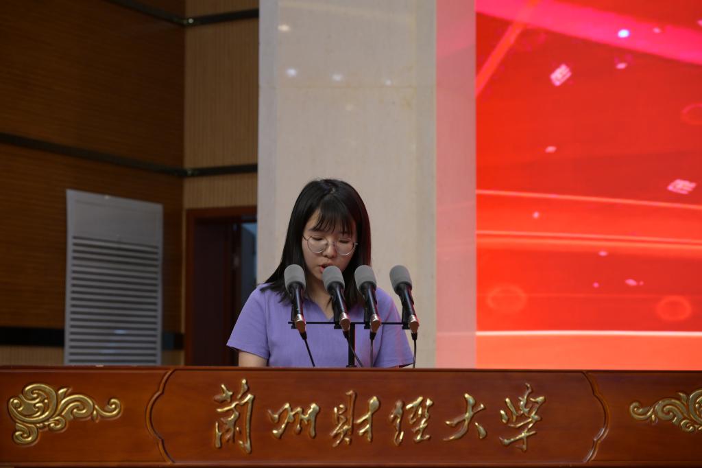 庆祝表彰大会上,甘肃省教学名师、教务处处长南星恒教授带领新入职教师面向国旗宣誓。