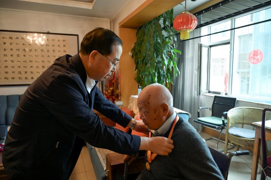 今年是纪念中国人民抗日战争暨世界反法西斯战争胜利80周年。9月2日,校党委书记王光亚看望慰问抗战时期参加革命工作的原学校党委书记刘万真同志,并向其颁发由中共中央、国务院、中央军委联合授予的“中国人民抗日战争胜利80周年”纪念章,向其致以崇高敬意与深切关怀。