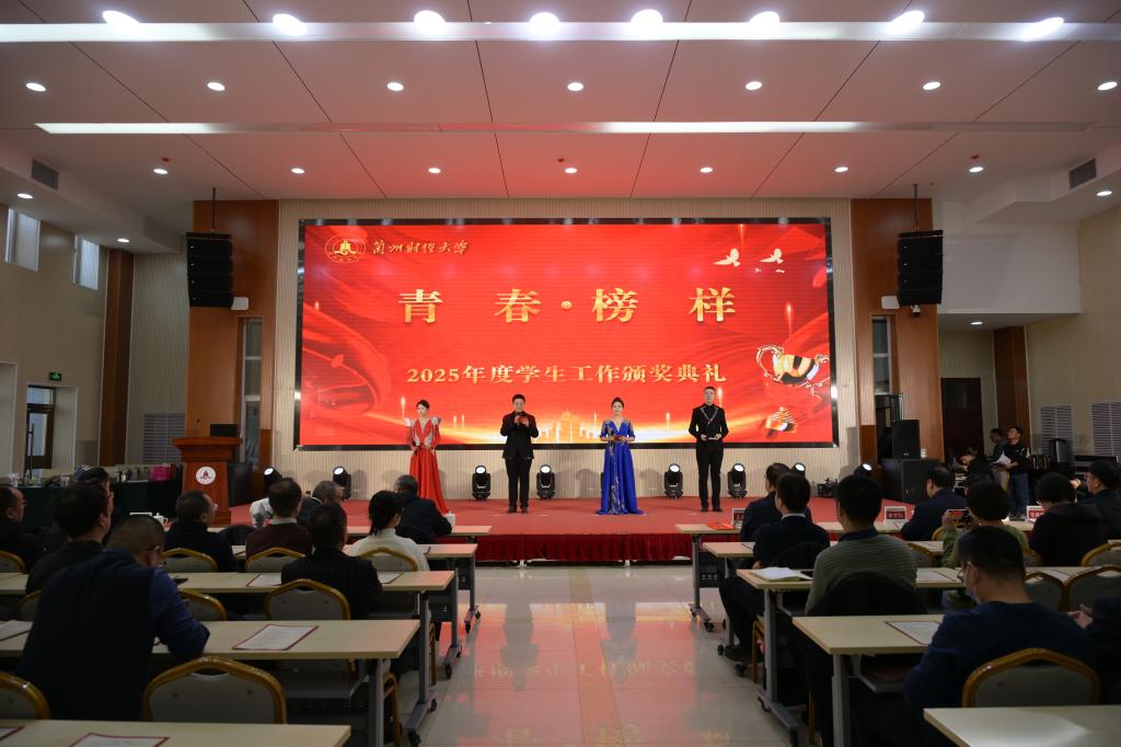 12月11日下午,兰州财经大学“青春·榜样”2025年度学生工作颁奖典礼在和平校区博雅堂举行。校领导王光亚、滕宗骞、李万红、景宗刚、管新帅、黄恒君、南星恒、刘杰,校党委常委、组织部部长唐莉出席颁奖典礼。